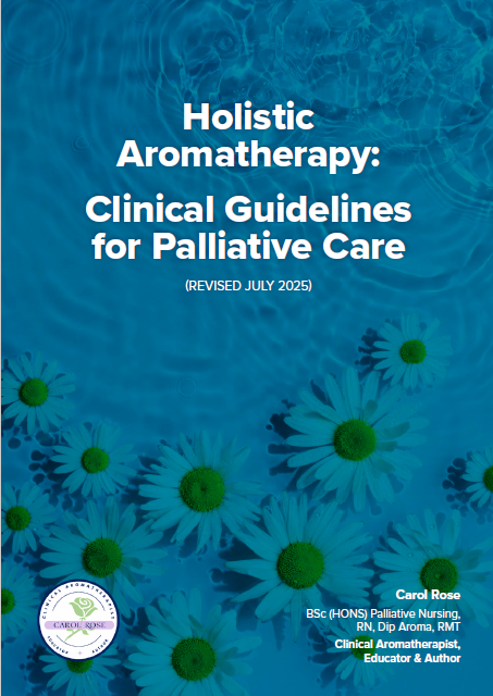 These following clinical guidelines have been published by Carol Rose - A dedicated practitioner and advocate of evidence-based complementary therapies for patients with life-limiting illness, she is also the author of the textbook, Integrating Clinical Aromatherapy in Palliative Care which explores how to effectively bridge the gap between conventional healthcare approaches and safe integration of clinical aromatherapy as a healing modality in specialist palliative care. Click on the image below to download the guidelines: